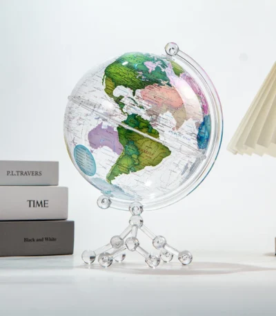 $18.9910Inch 25CM Gold Transparent Globe With Sailboat Illuminated Decorative World Map Globes